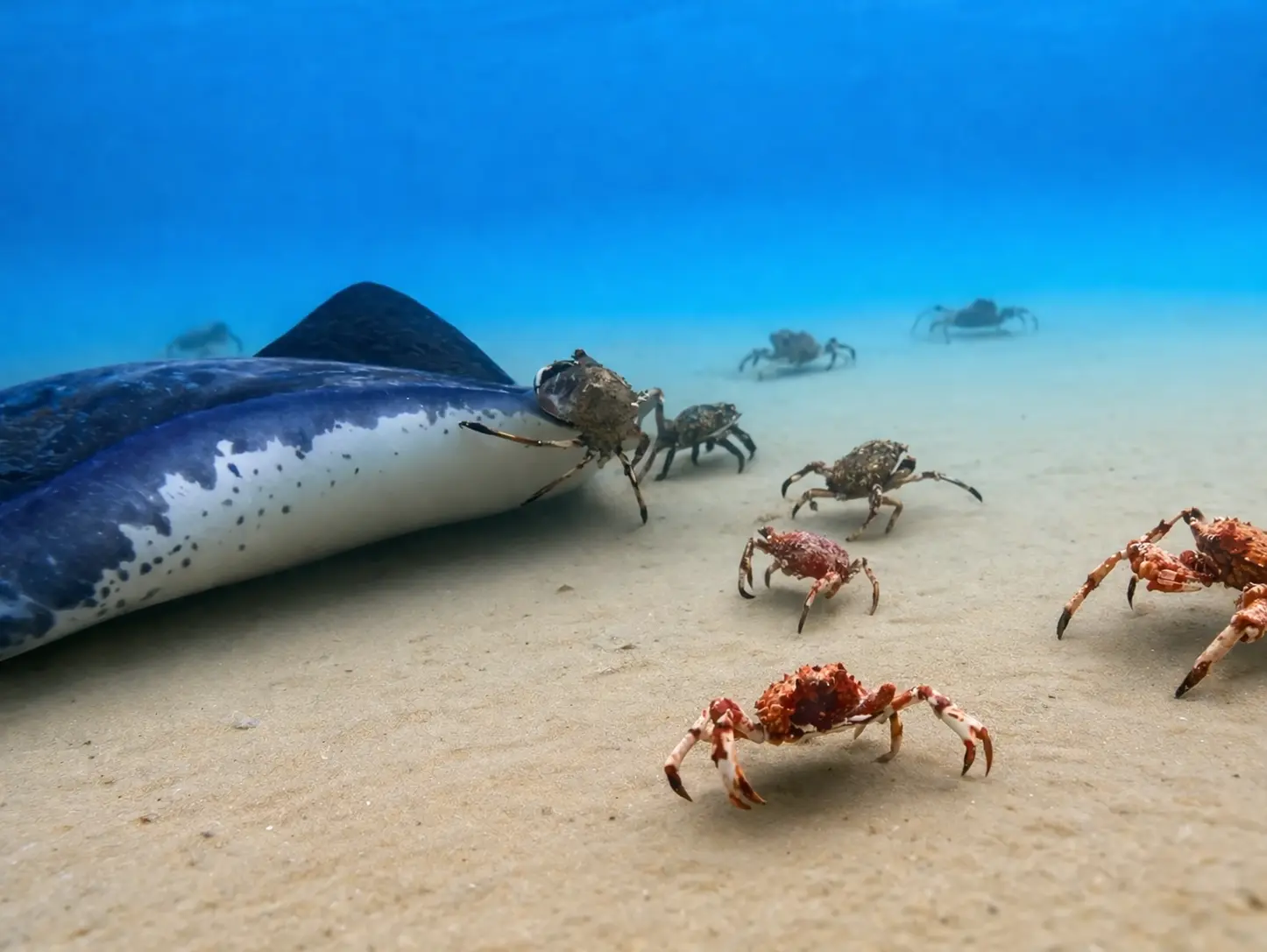 The footage showed the ray targeting the robot crab, nudging it, pushing at it, and eventually flipping it onto its back. For a moment, it looked like that was it. The robot had essentially been singled out and abandoned while the real crabs protected themselves. And honestly, that would’ve made perfect sense. Because why wouldn’t they? To them, this thing wasn’t really one of them. It was just some strange crab-shaped object that had wandered too close at the wrong time. But then something happened that changed the entire feel of the experiment.