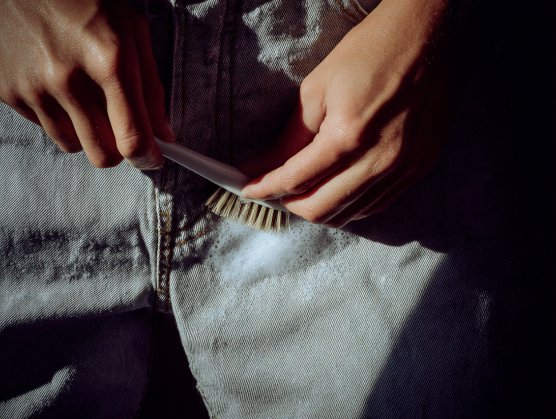 Spot cleaning is the real hero move. If you got a dab of sauce, a little coffee, or one mystery mark on the thigh, that does not mean the entire pair needs a full wash. Denim brands and care guides have long encouraged people not to over-wash jeans, because frequent washing can wear down color and affect the fit. Levi’s, for example, recommends washing denim sparingly and spot-cleaning small stains between washes. They ask wearers to use a damp cloth or an old toothbrush with mild soap to tackle small stains between washes. It is targeted, quick, and very logical, helping you avoid unnecessary machine wear while still dealing with the part that is actually dirty.