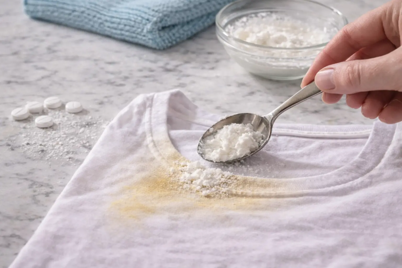 Aspirin has also been used as a simple DIY option for treating mild stains on clothing, particularly sweat marks or yellowing around collars and underarms. The usual method involves crushing a few tablets, mixing them with water to form a paste, and applying it directly to the affected area before washing.