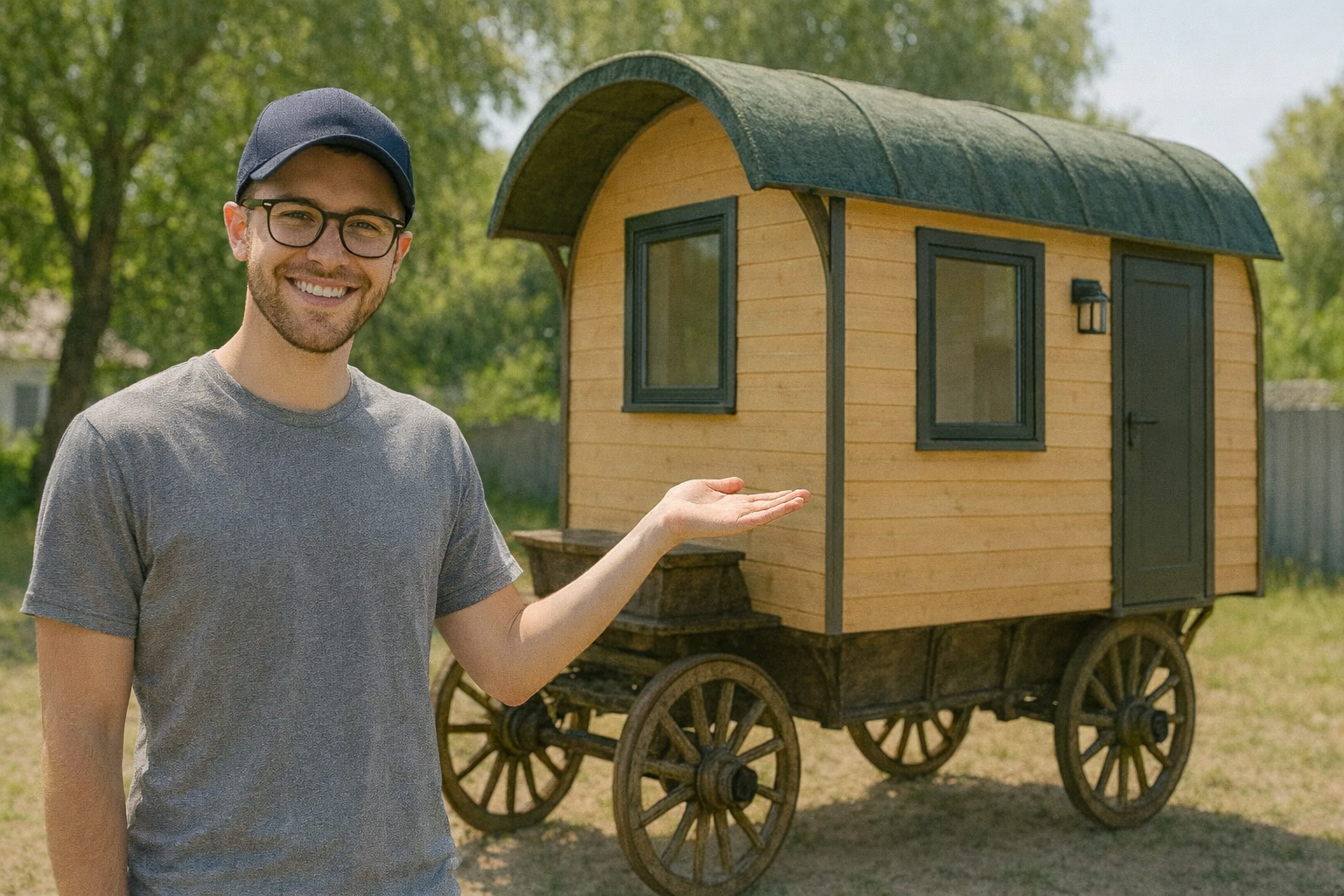 Man Resides in a Horse Carriage Tiny House on Village Edge