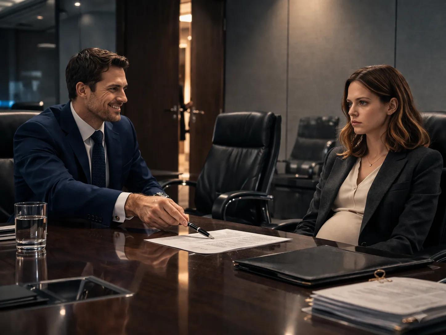 The conference room smelled of leather chairs and fresh coffee. Adrian arrived early, relaxed and immaculate in a navy suit, one hand resting possessively at the small of my back as if we were the happiest couple in the building. My father’s estate adviser, Mr. Bell, greeted us with unusual formality and invited us to sit. A second man I didn’t know was already at the far end of the table, flipping through a file. Adrian barely looked at him. He was too busy arranging the papers in front of me and sliding a pen into place. “Just a few signatures,” he said with a smile.