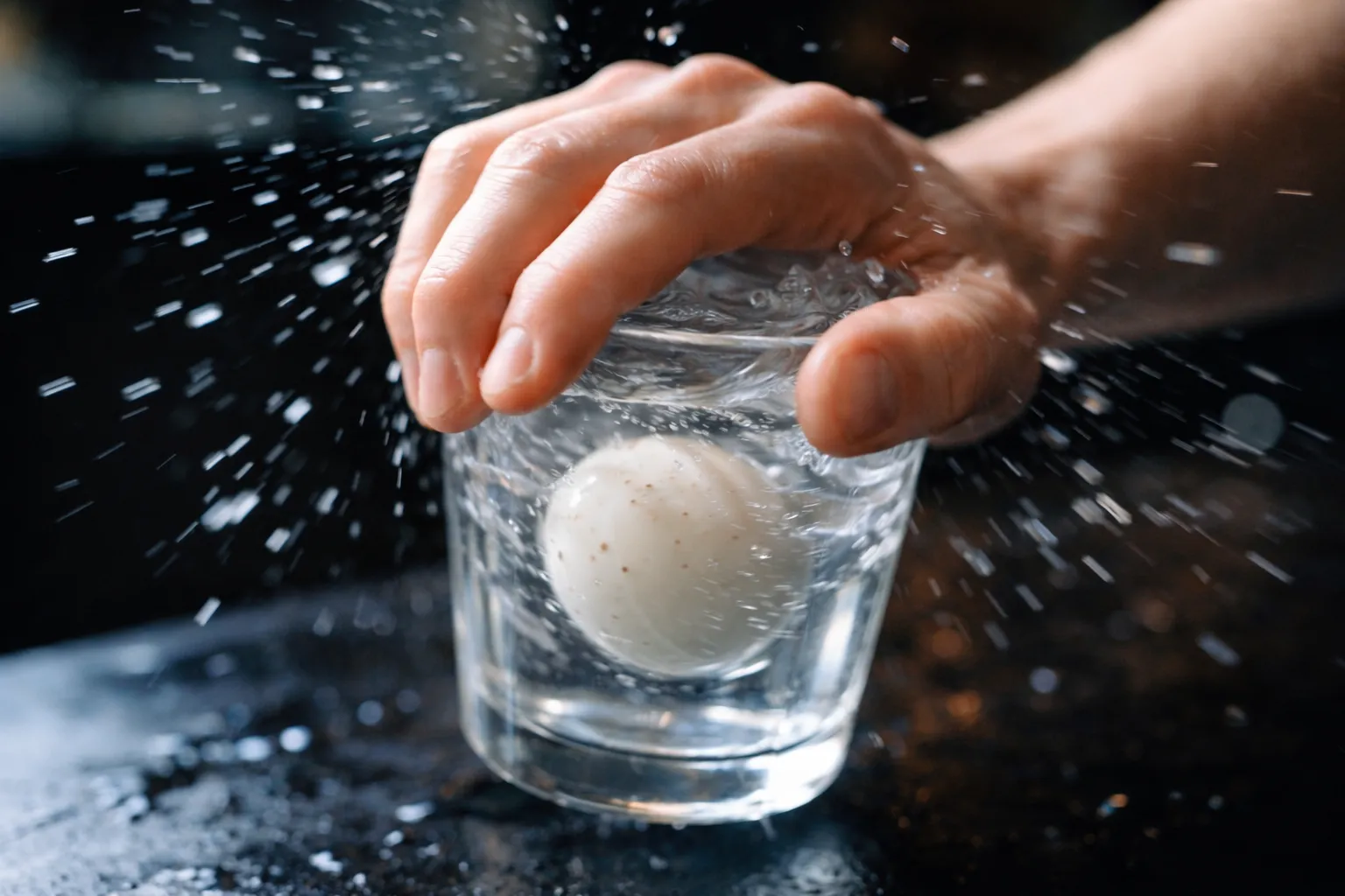 As you shake, you’ll hear the “clack-clack-clack” of the shell hitting the glass. The water acts as a lubricant and a pressure distributor, causing the shell to fracture into a “mosaic” pattern rather than individual shards. The moisture works its way under the membrane, essentially lifting the entire shell away from the egg white simultaneously. It’s a controlled chaos that achieves in seconds what your fingers couldn’t do in minutes. When you stop shaking, you’ll notice the water has turned a bit cloudy and the shell looks… different. It’s time for the big reveal.